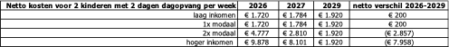 De extra uitgaven aan het huidige kinderopvangplan zijn voor 2027 al fors bijgesteld. Maar uit de toelichting op de conceptplannen voor 2027 die de oppositie nog mag toetsen blijkt dat de inkomensvoordelen voor hoge inkomens in stand blijven. In de nota van toelichting wordt dat nog enigszins verbloemd door de rekenvoorbeelden die uitsluitend het inkomenseffect voor 2027 laten zien: