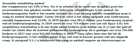 In de Memorie van Toelichting wordt gesteld dat een vraagtoename van 23% in de kinderopvang in vijf jaar tijd realistisch is, omdat de sector tussen 2019 en2024 een vergelijkbare groei van 23,6% in vergoede opvanguren heeft gerealiseerd. Hoewel deze historische ontwikkeling numeriek klopt, is het gebruik van deze periode als referentiepunt voor toekomstige groei misleidend. De recente groeicijfers in de kinderopvangsector, zoals weergegeven in de bijgevoegde grafiek, tonen namelijk een duidelijk afnemende trend die niet strookt met het beeld van een sector die binnen afzienbare tijd opnieuw met ruim twintig procent kan uitbreiden: