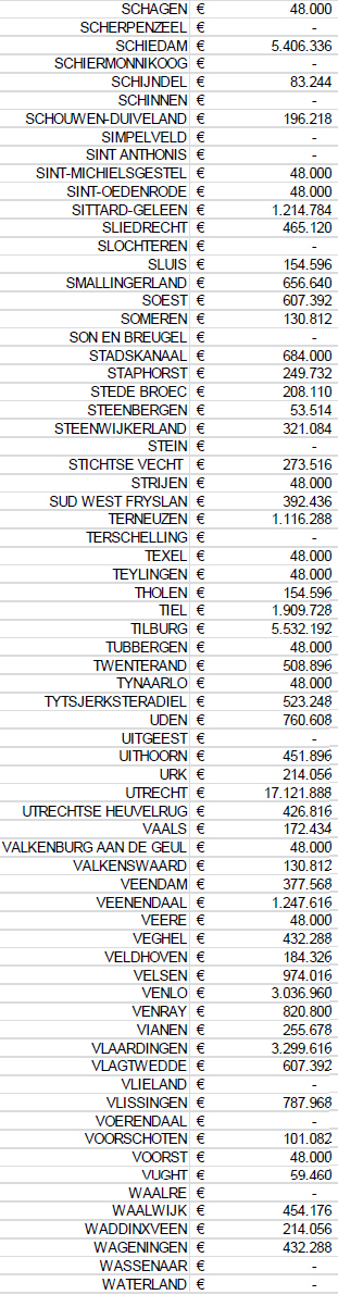 In de bijlage is een overzicht per gemeente opgenomen van de bedragen per gemeente zoals Dekker nu voorstelt voor 2017. Over dit voorstel zal nog een debat gevoerd worden in de Tweede Kamer en dat betekent dat de verdeling nog kan wijzigen.